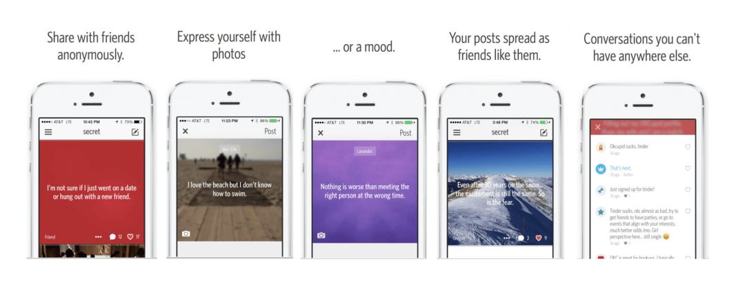 Secret是一款基于手机通讯录的匿名社交应用,用户可以把秘密直接分享给通讯录中的好友,将匿名社交的范围从陌生人扩展到了熟人之间。